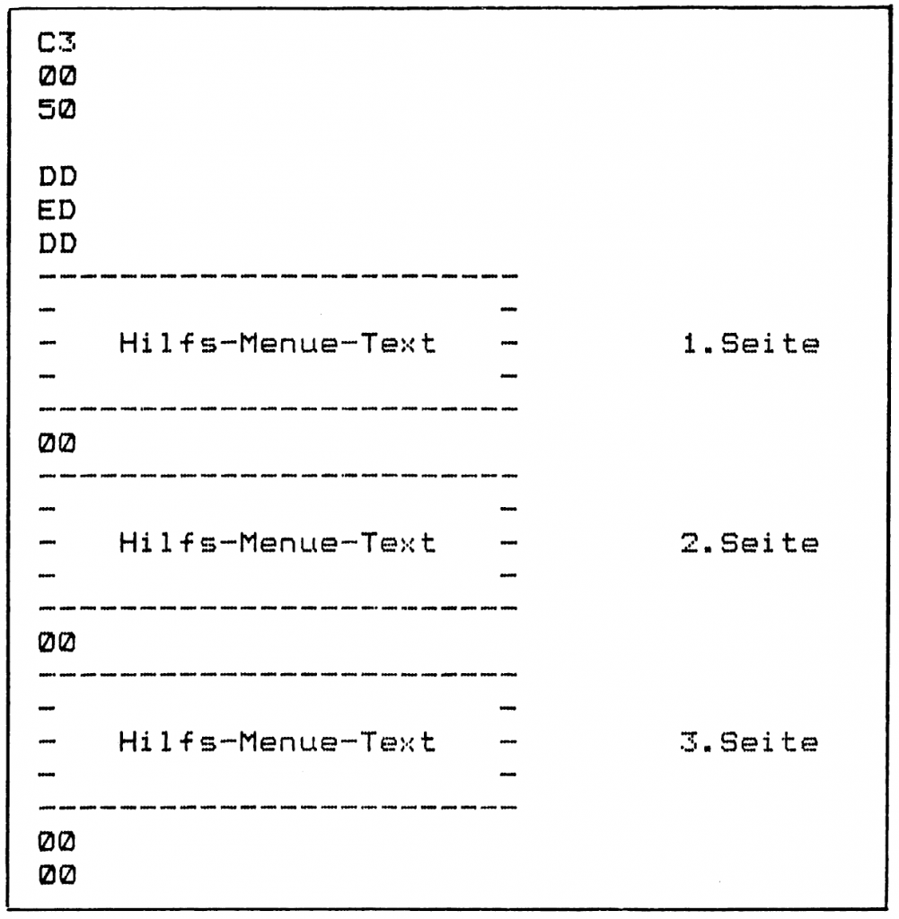 In den nachfolgenden drei Speicherplätzen des Hilfs-Menues steht die sogenannte „Hilfs-Menue-Kennung“: